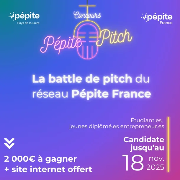Concours de battle de pitch sur Instagram, à destination des étudiants et jeunes diplômés (depuis moins de 5 ans), porteurs d’un projet entrepreneurial sur le territoire des Pays de la Loire (Angers, Nantes, Le Mans, La Roche Sur Yon….). Places limitées à 6 projets !