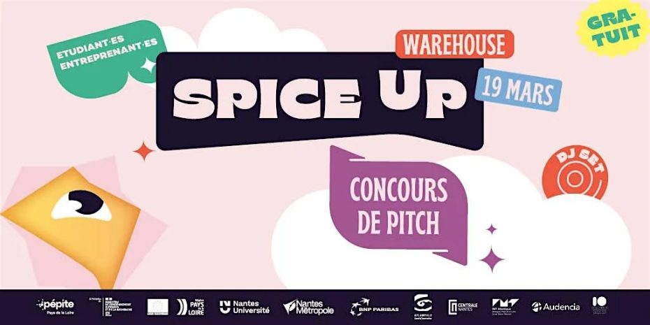 Spice Up est porté par Pépite des Pays de la Loire en partenariat avec Nantes Métropole, BNP Paribas, Atlanpole, Audencia, Centrale Nantes, IMT Atlantique et Nantes Université,