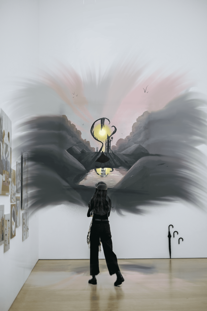 Je voulais répondre à une forme de passivité dans la manière dont on consomme l’art. Dans beaucoup d’expositions, le spectateur regarde, interprète brièvement, puis asse à l’œuvre suivante. L’expérience reste souvent rapide, distante, presque superficielle. Mon projet cherche à transformer cette posture. Il propose une expérience où le visiteur ne se contente plus d’observer une œuvre, mais devient acteur de son exploration.
